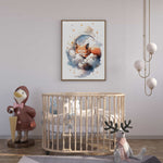 N’hésitez pas à associer les affiches par 2 ou 3. Cela permet de faire écho au motif principal du papier peint que vous aurez choisi, d’assurer un bon équilibre visuel et de créer un point focal harmonieux qui apporte charme et personnalité à la chambre de bébé.