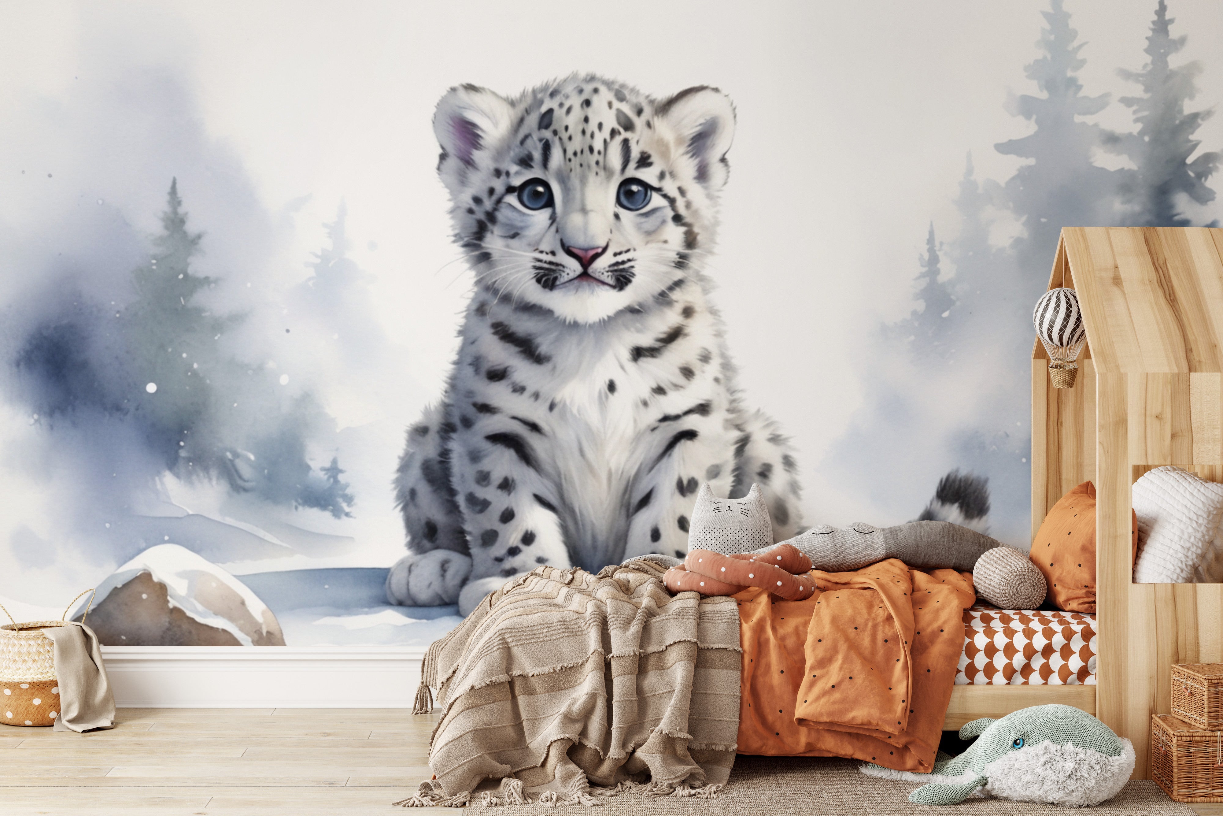 Kinder Panoramatapete Baby Schneeleopard